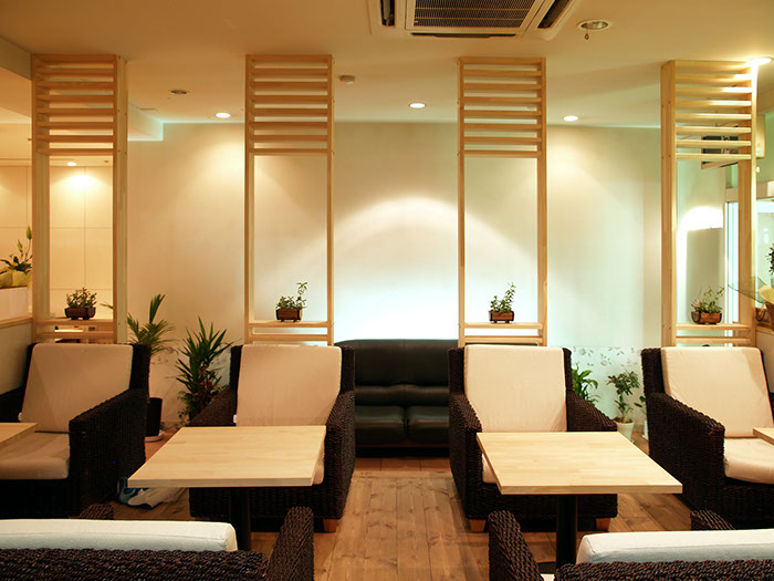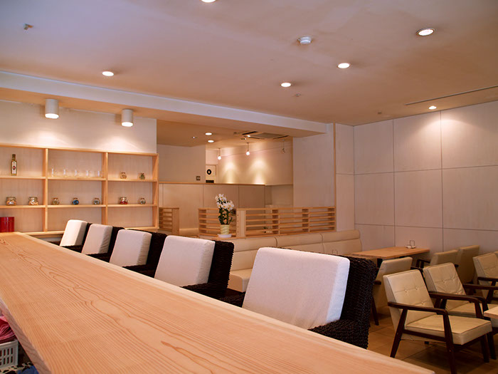 ウェディングプランナーである施主が経営する「カフェ一体型のブライダルサロン」。挙式を無事に終えた新郎新婦の2人といつまでも繋がっていたいという思いを込めて、こだわりのフードメニュー(イタリアン)をそろえたカフェとサロンを併設させています。天然木をふんだんに使い、自然素材特有の温かみのある雰囲気と圧迫感のない居心地の良い空間作りを心がけました。