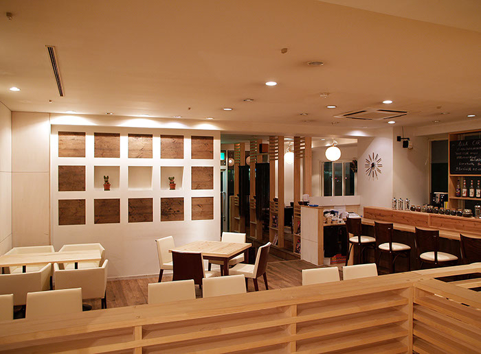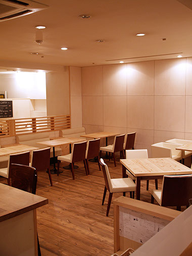 LOKO cafeの第2期工事。オープンから1年が過ぎ、前回行うことができなった工事を含めた店内改装。客席レイアウトや家具の見直しも行い、第1期工事の時よりも落ち着いた、大人の雰囲気を与えるような空間へと変化しています。