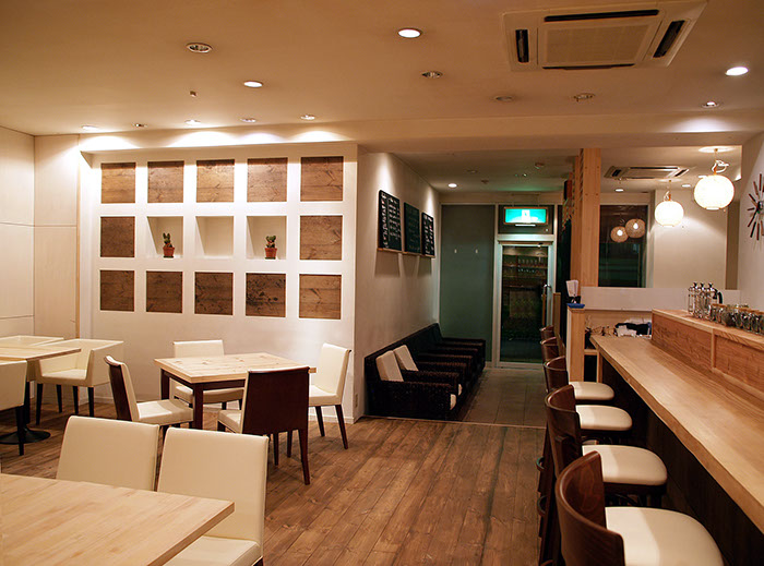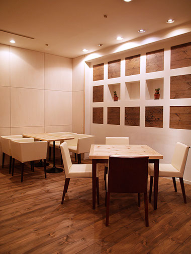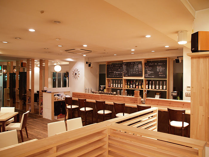 LOKO cafeの第2期工事。オープンから1年が過ぎ、前回行うことができなった工事を含めた店内改装。客席レイアウトや家具の見直しも行い、第1期工事の時よりも落ち着いた、大人の雰囲気を与えるような空間へと変化しています。