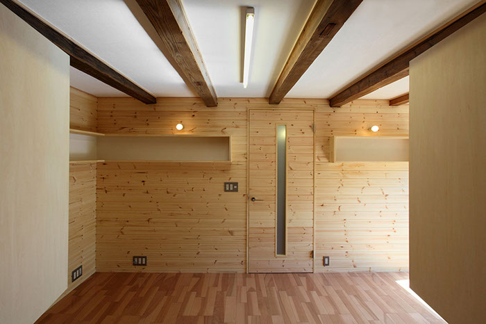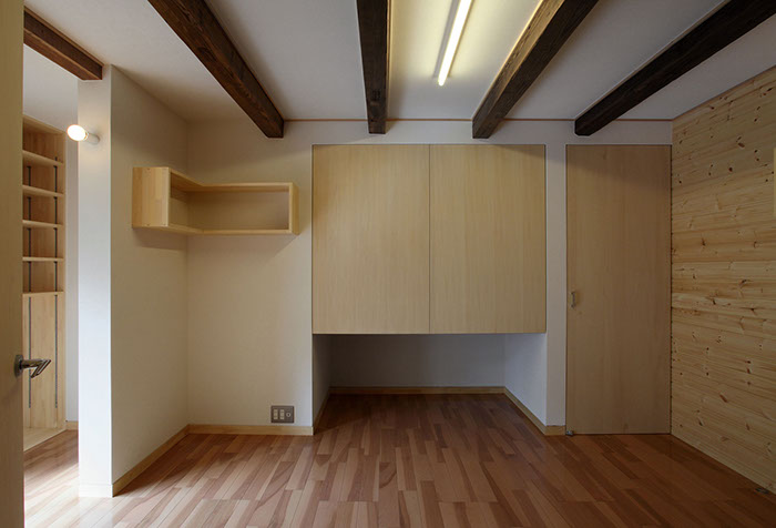 20代後半の若夫婦が生活する為に、築80年程になる住宅の1階離れを寝室にリフォームしました。基本的な間取りは変更せず、建具をなくしたり天井の高さを出来る限り高くして開放的な空間となるようにしました。